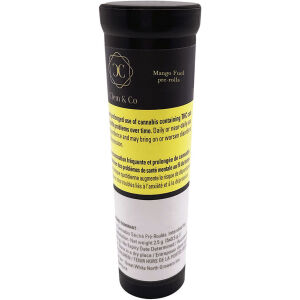 Clem & Co’s Mango Fuel pre-rolls deliver a vibrant sativa dominant hybrid experience. With high THC, this cultivar was bred from Strawberry Banana x OG Kush. It combines rich, fruity sweetness with layers of spice for a bold and flavourful session. The terpene profile of caryophyllene, limonene and humulene adds a zesty kick and depth of aroma, making every puff smooth and potent. These pre-rolls are hang dried and hand trimmed, preserving trichome integrity and elevating the overall quality of the flower.