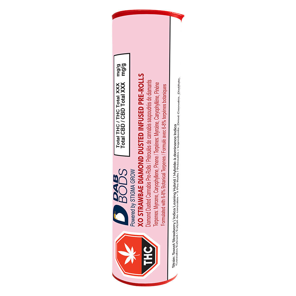 Dab Bods – XO Strawbae Diamond Dusted Infused Pre-Rolls – 3×0.6g