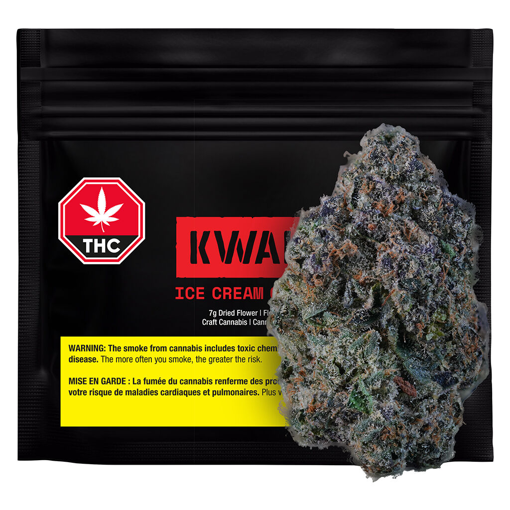 Ice Cream Cake #4 by KWALL is where legacy potency meets next generation flavour. An indulgent cultivar and unicorn pheno that blends rich dessert-like flavours with classic potency. A cross of Wedding Cake x Gelato #33, this strain is celebrated for its smooth, creamy vanilla notes layered with subtle gas and a sweet, doughy finish. The smoke is full-bodied, offering a decadent flavour profile that lingers from first draw to exhale, and tastes just as good on the last puff as the first. The buds are dense, resin-rich and visually striking, showcasing striking shades of green and purple beneath and a frosty trichome layer.