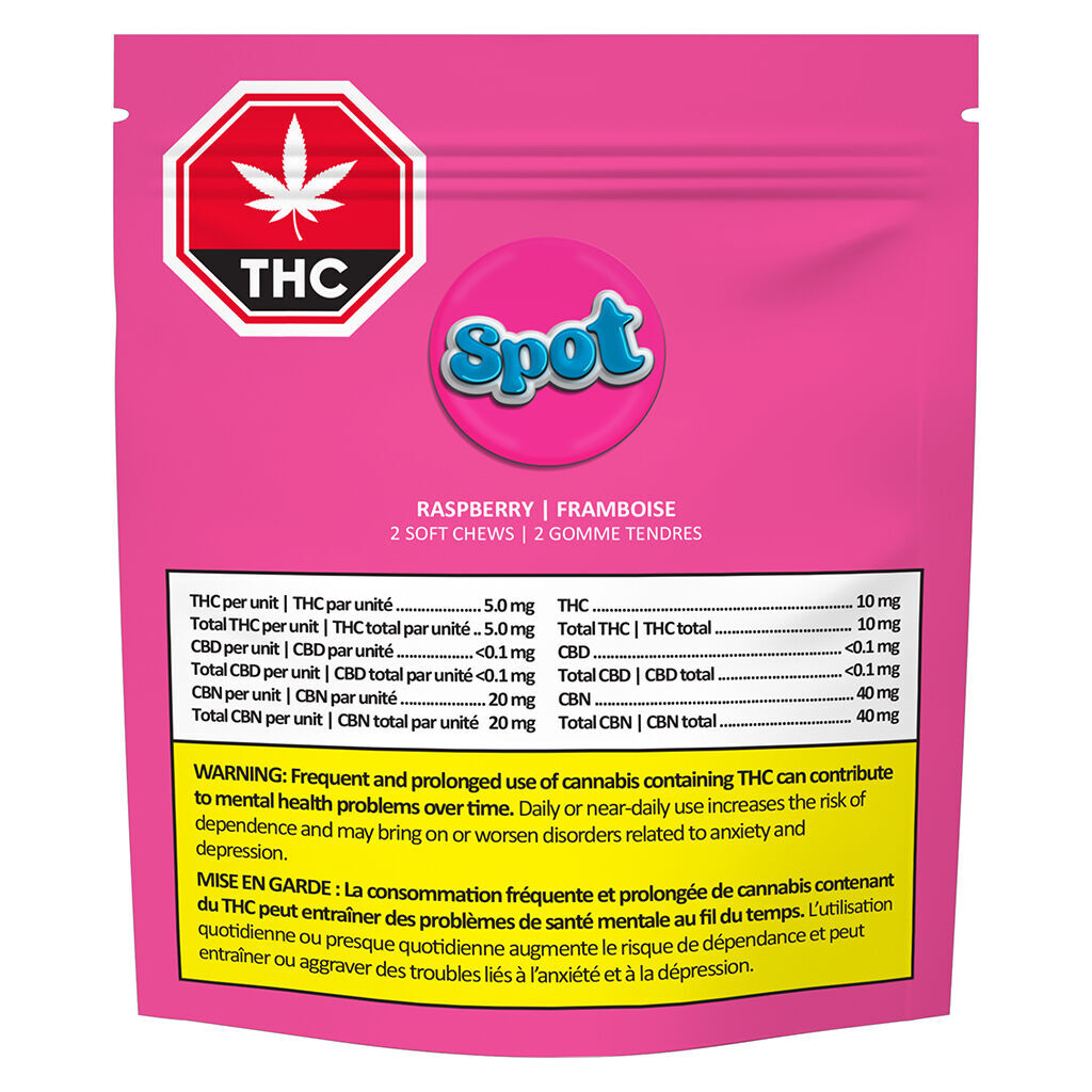 Spot – Raspberry 4:1 CBN:THC Soft Chews – 2 Pack