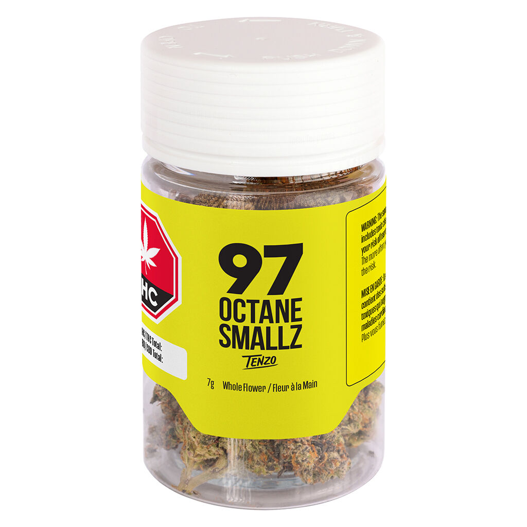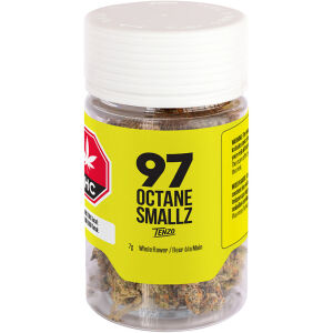 Introducing 97 Octane, a high octane craft flower. Curated from our loudest, most iced out genetics, this collection of smalls delivers bag appeal and smooth gas. Handcrafted and indoor-grown at our BC facilities, every bud is born from our own genetics portfolio and finished to craft standards. Hand packaged in our custom designed Pop and Pour glass jar.