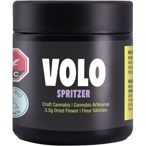 Spritzer (Rntz x Grape Pie x MAC) by VOLO, bred by Capulator, delivers a bold and complex flavour that’s as tasty as it is potent, blending sweet grape candy with creamy funk and a punch of gassy diesel. The result is a rich, deeply layered smoke. Spritzer’s buds are dense and frosty, showcasing deep green and purple hues beneath a heavy coat of trichomes. Our small batch flower undergoes a meticulous process, including hang drying, precision hand trimming, slow cold curing and hand packaging to preserve terpene integrity and to maximize flavour and smoothness